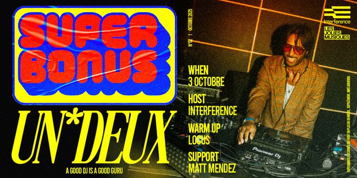 Producteur, DJ et digger insatiable, UN*DEUX aime tordre les codes du club. Entre rééditions aux sonorités indiennes et rythmiques acides, ses sets transforment chaque dancefloor en vrai trip psychédélique. Son mantra ? « Un bon DJ, c’est un bon gourou. » Et à l’écouter, on comprend vite pourquoi.